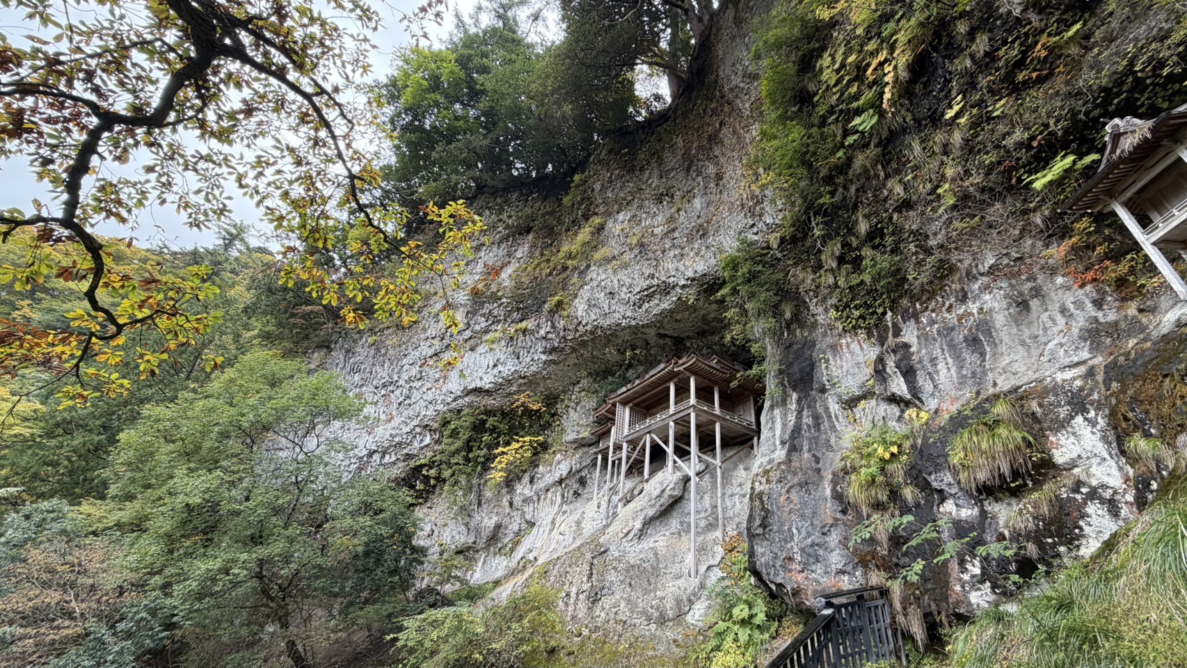 断崖に立つ圧倒的な存在感、山道に満ちる神聖な空気、